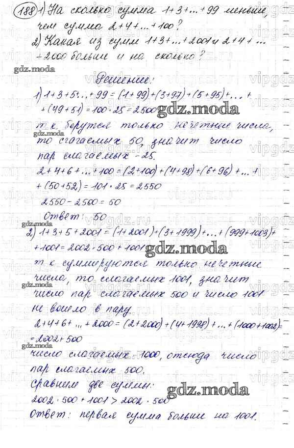 ОТВЕТ на задание № 188 Учебник по Математике 5 класс Мерзляк Алгоритм успеха
