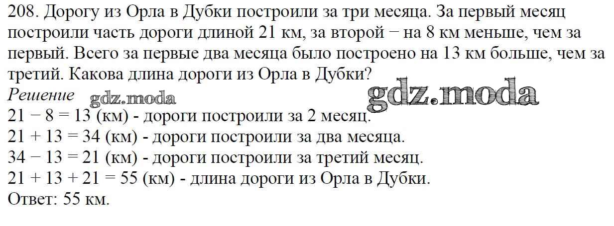 ОТВЕТ на задание № 208 Учебник по Математике 5 класс Мерзляк Алгоритм успеха