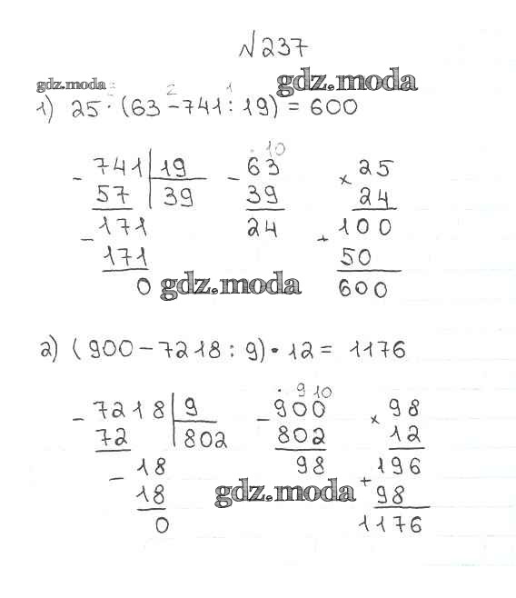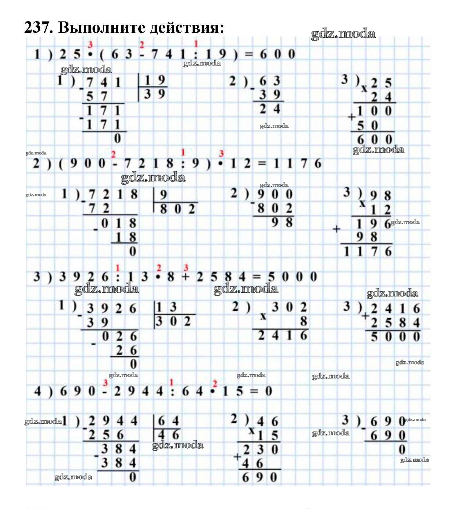 ОТВЕТ на задание № 237 Учебник по Математике 5 класс Мерзляк Алгоритм успеха