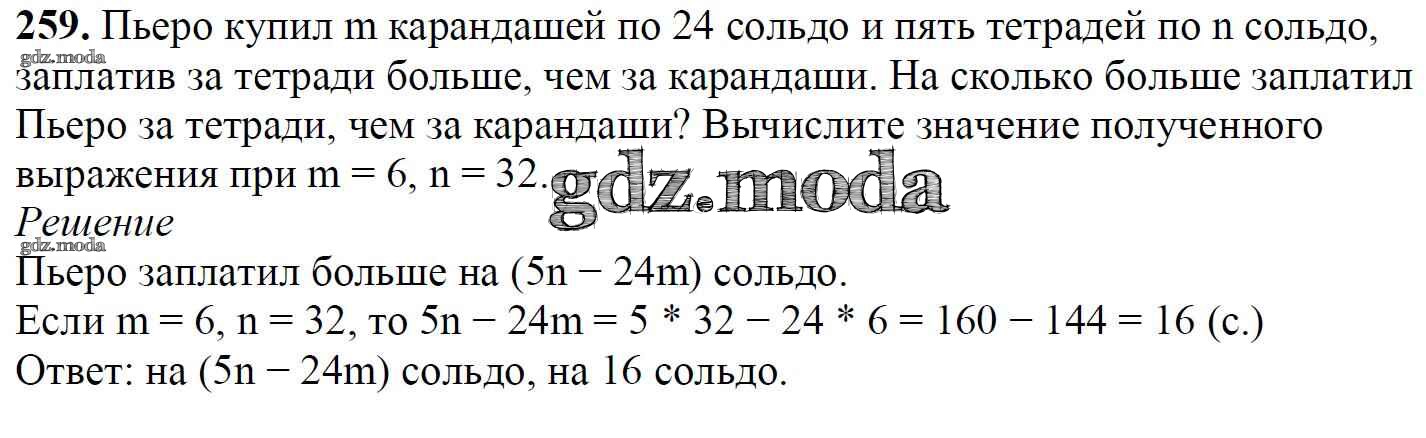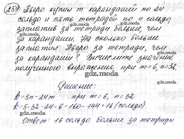 ОТВЕТ на задание № 259 Учебник по Математике 5 класс Мерзляк Алгоритм успеха
