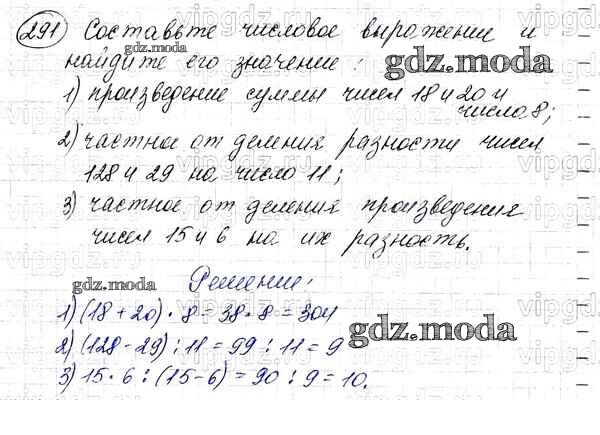ОТВЕТ на задание № 291 Учебник по Математике 5 класс Мерзляк Алгоритм успеха