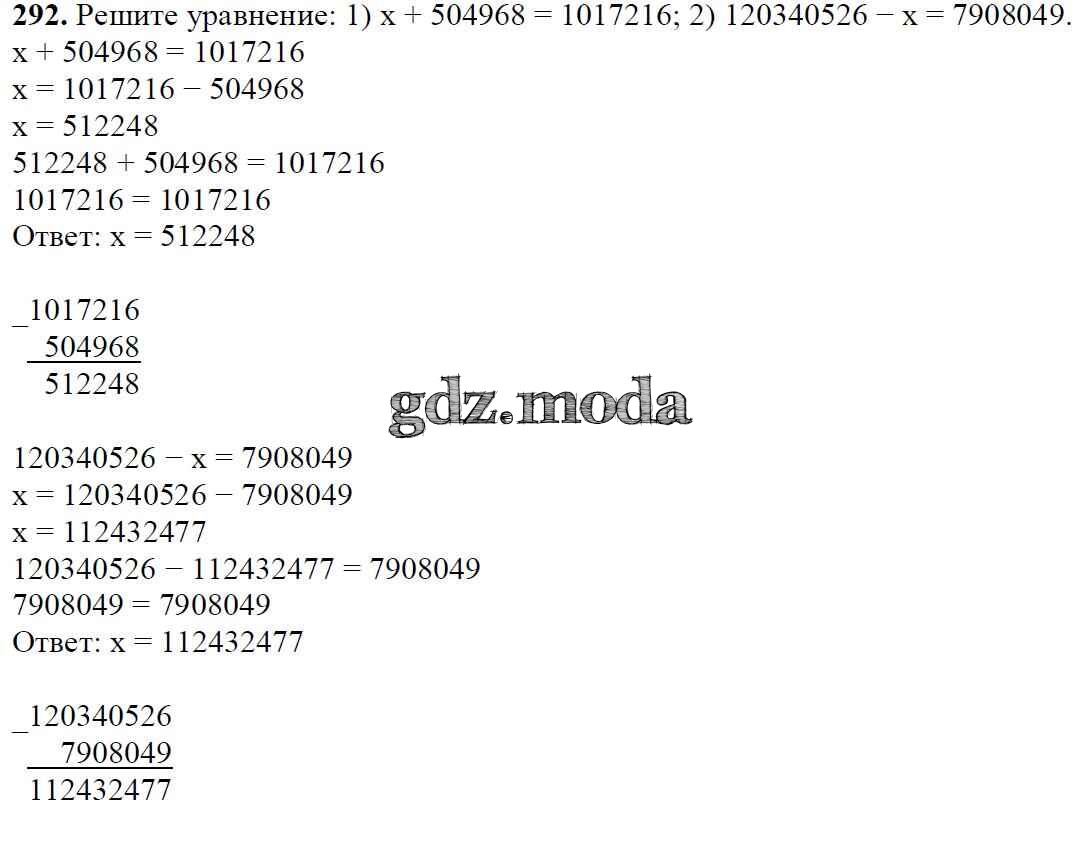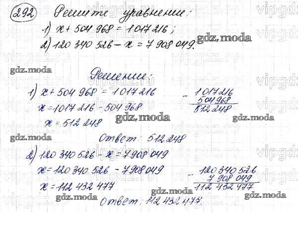 ОТВЕТ на задание № 292 Учебник по Математике 5 класс Мерзляк Алгоритм успеха