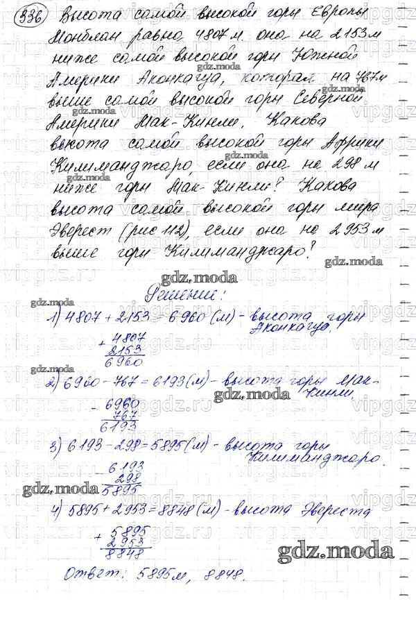 ОТВЕТ на задание № 336 Учебник по Математике 5 класс Мерзляк Алгоритм успеха