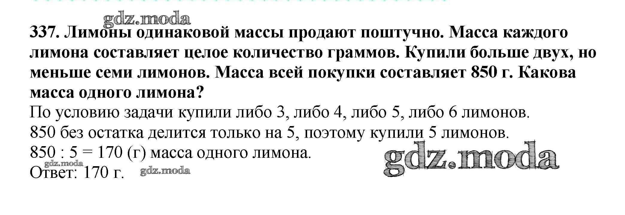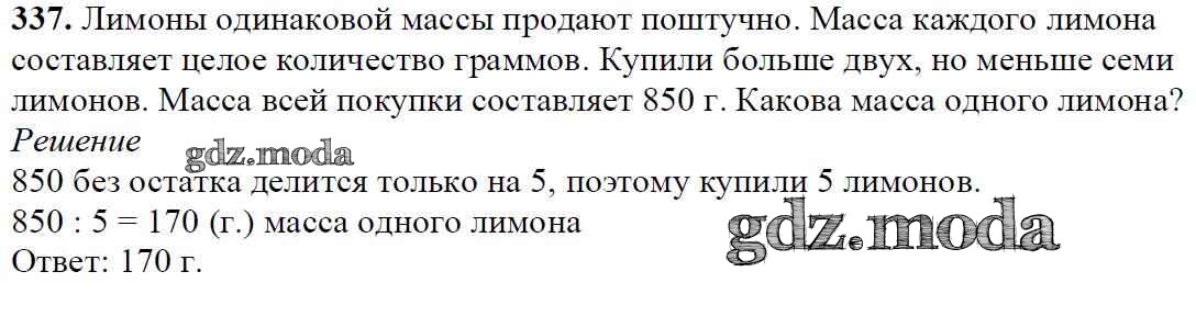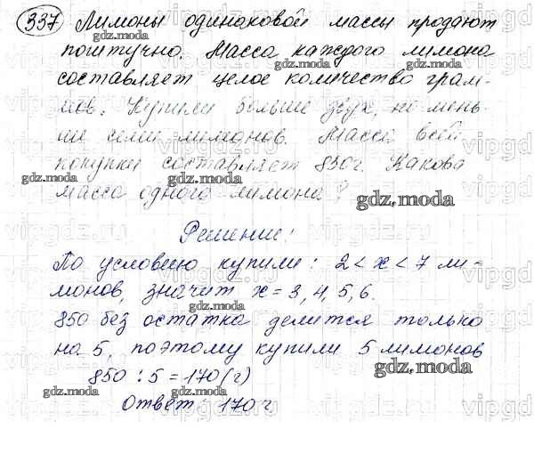 ОТВЕТ на задание № 337 Учебник по Математике 5 класс Мерзляк Алгоритм успеха