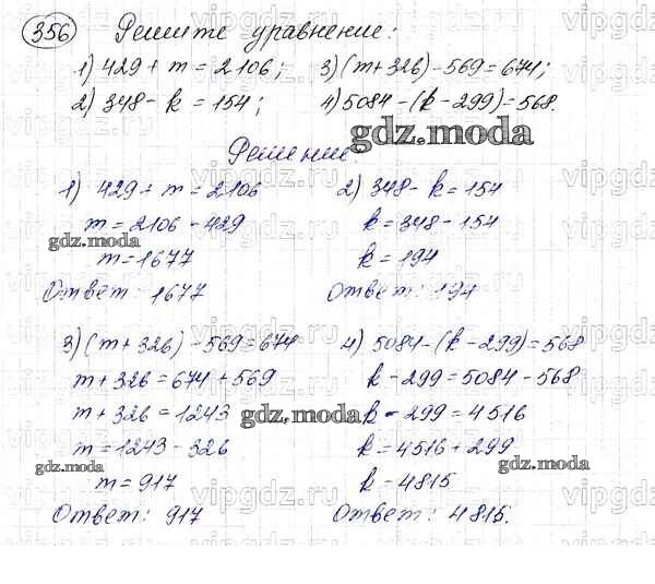 ОТВЕТ на задание № 356 Учебник по Математике 5 класс Мерзляк Алгоритм успеха