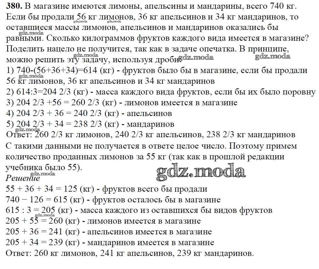 ОТВЕТ на задание № 380 Учебник по Математике 5 класс Мерзляк Алгоритм успеха