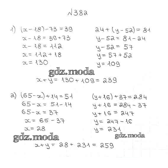 ОТВЕТ на задание № 382 Учебник по Математике 5 класс Мерзляк Алгоритм успеха