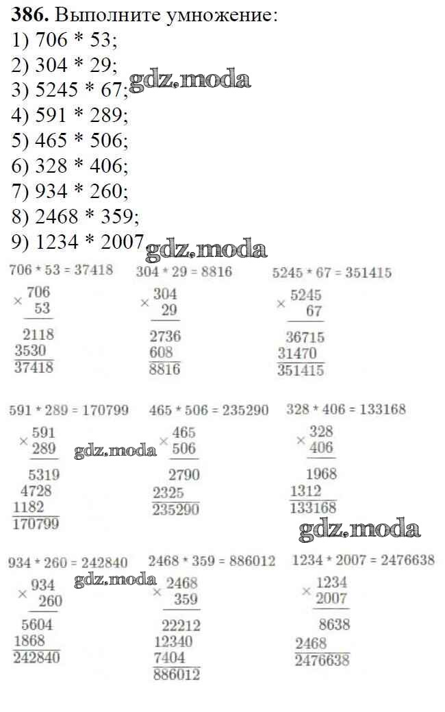 ОТВЕТ на задание № 386 Учебник по Математике 5 класс Мерзляк Алгоритм успеха