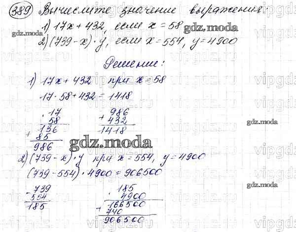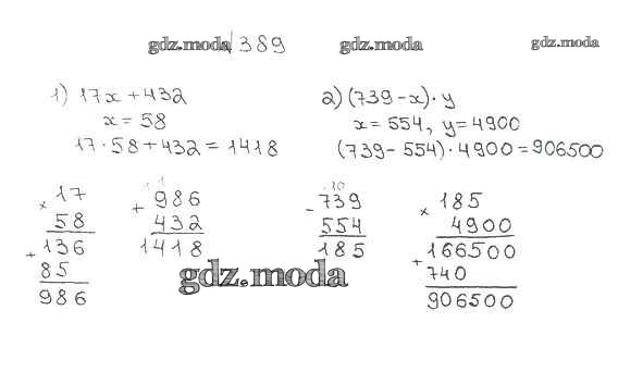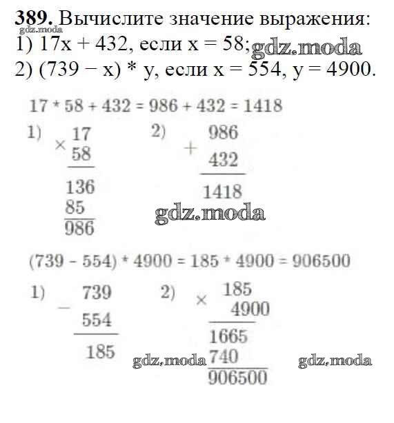 ОТВЕТ на задание № 389 Учебник по Математике 5 класс Мерзляк Алгоритм успеха