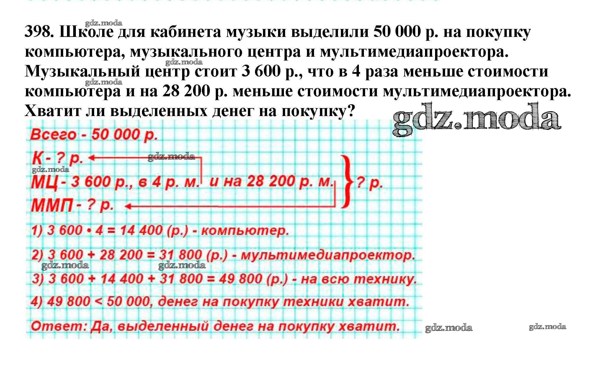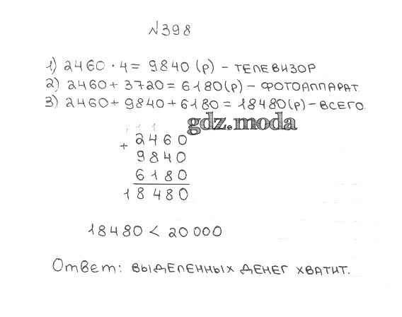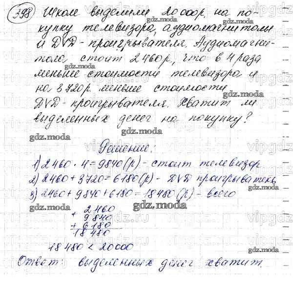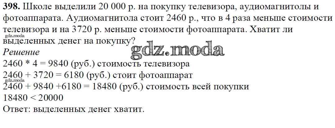 ОТВЕТ на задание № 398 Учебник по Математике 5 класс Мерзляк Алгоритм успеха