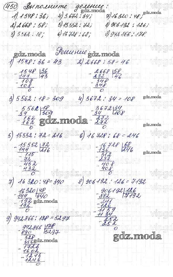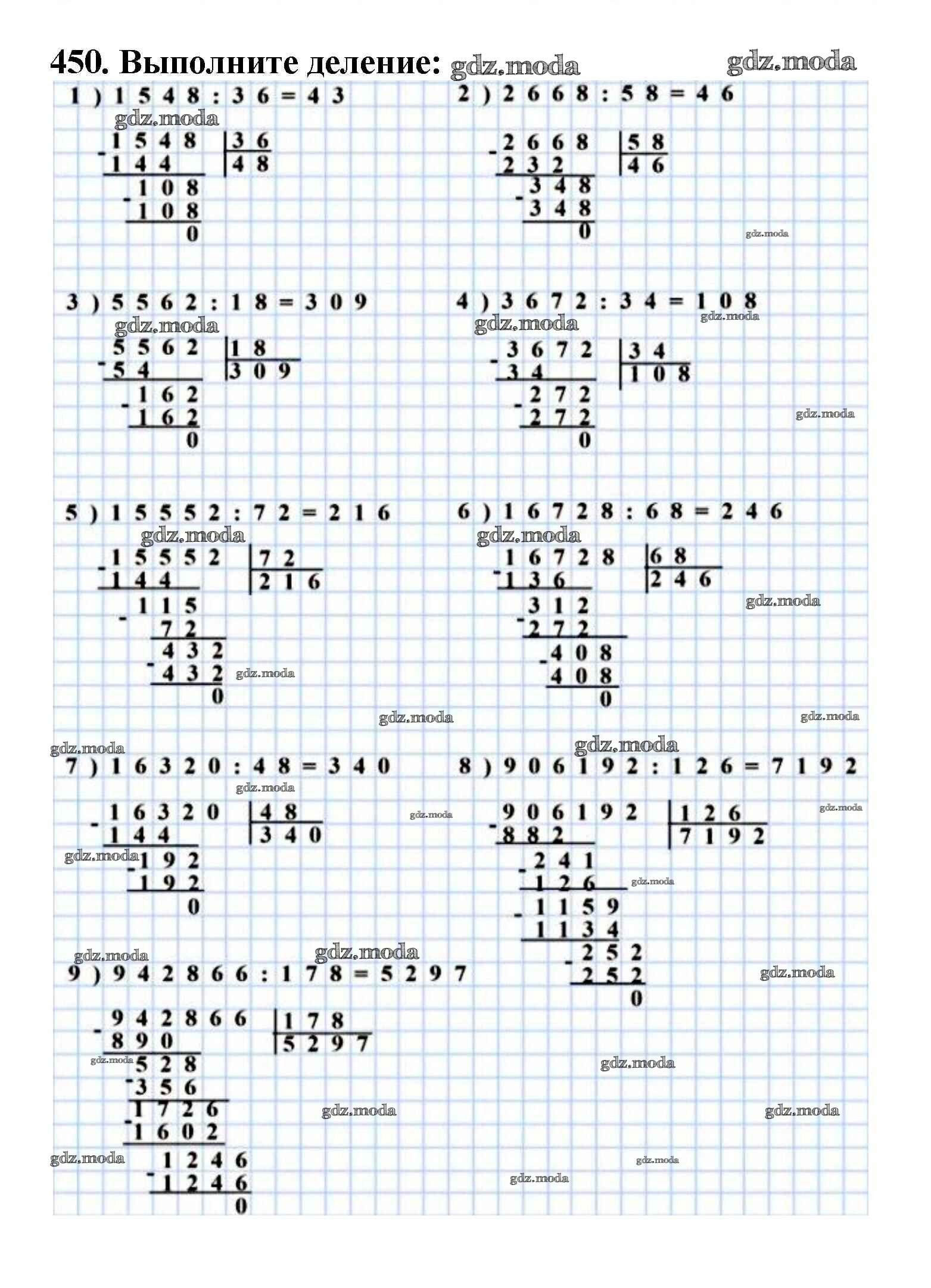 ОТВЕТ на задание № 450 Учебник по Математике 5 класс Мерзляк Алгоритм успеха