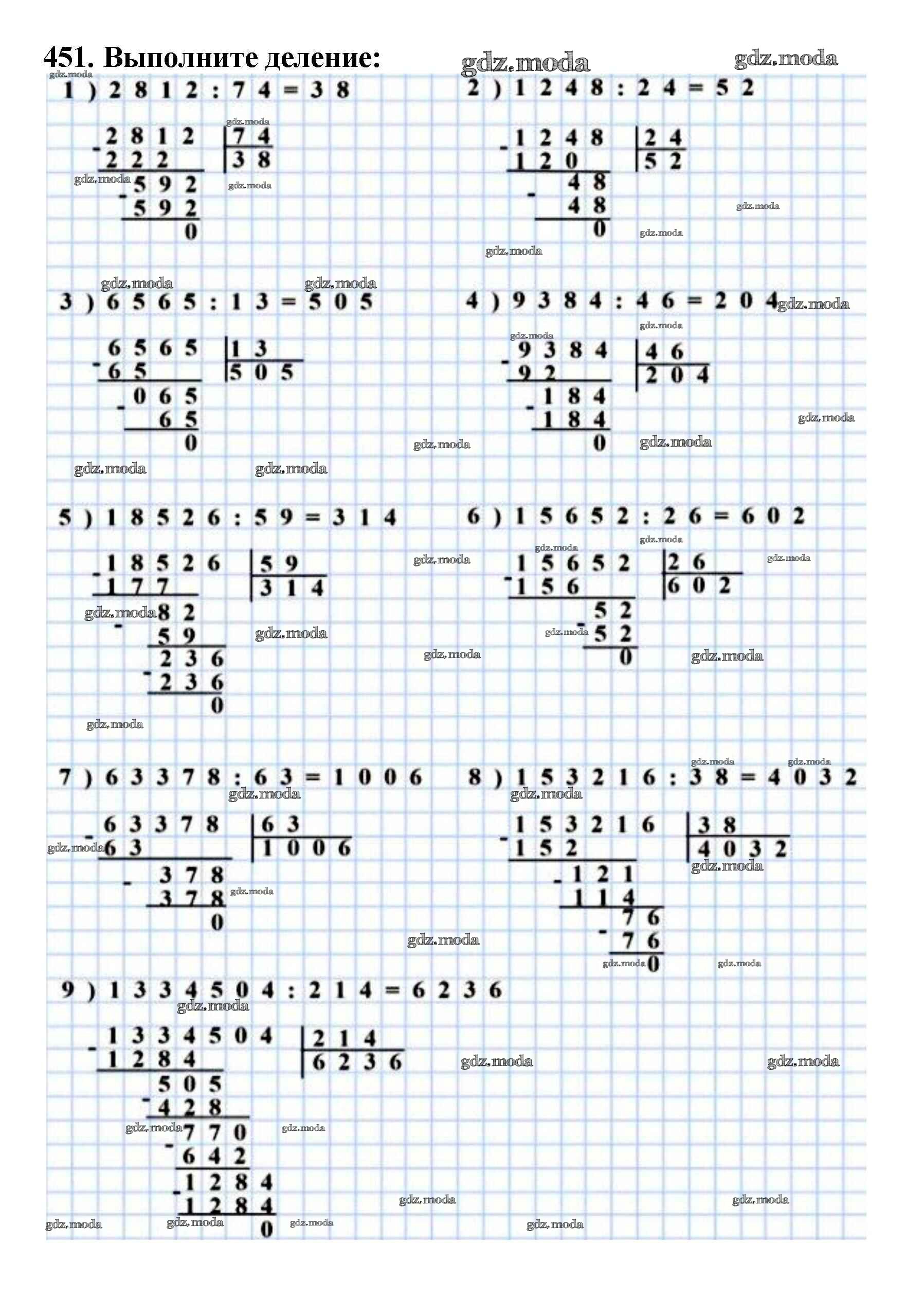 ОТВЕТ на задание № 451 Учебник по Математике 5 класс Мерзляк Алгоритм успеха