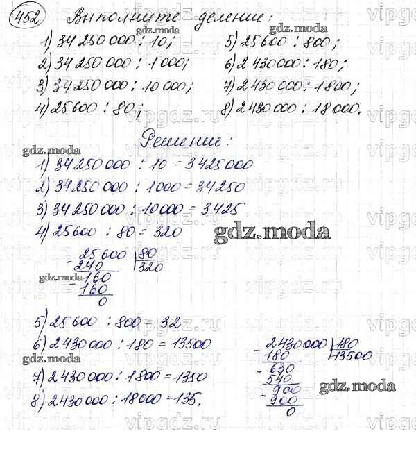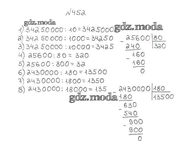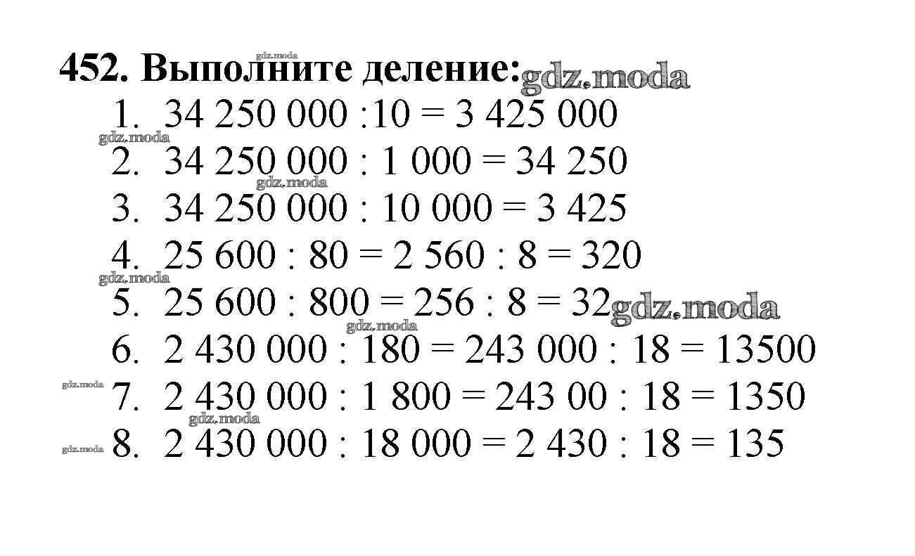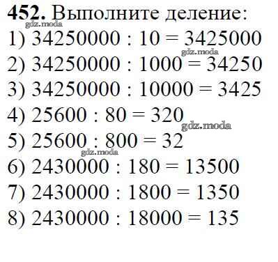ОТВЕТ на задание № 452 Учебник по Математике 5 класс Мерзляк Алгоритм успеха