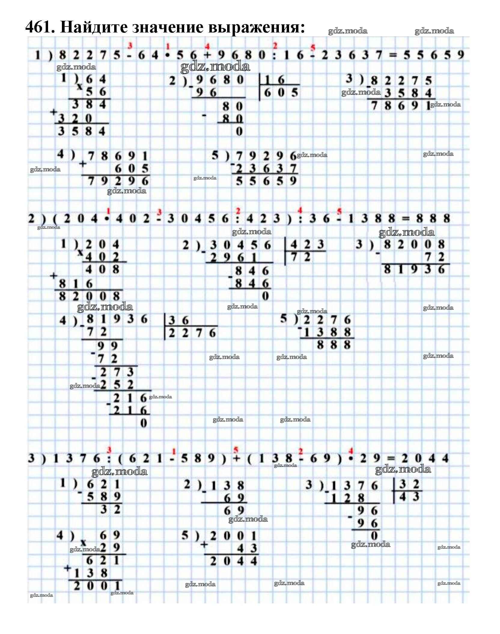 ОТВЕТ на задание № 461 Учебник по Математике 5 класс Мерзляк Алгоритм успеха