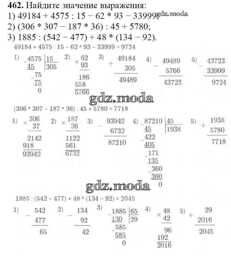 ОТВЕТ на задание № 462 Учебник по Математике 5 класс Мерзляк Алгоритм успеха