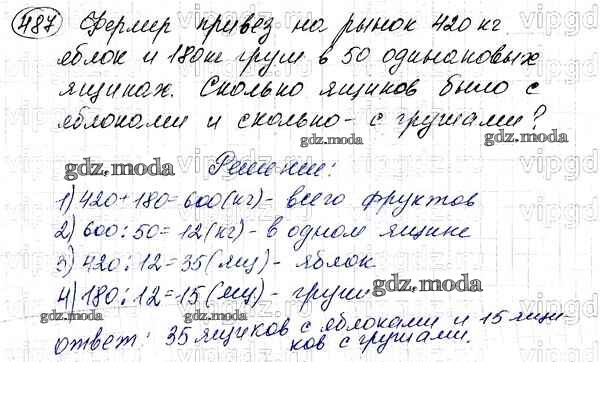 ОТВЕТ на задание № 487 Учебник по Математике 5 класс Мерзляк Алгоритм успеха