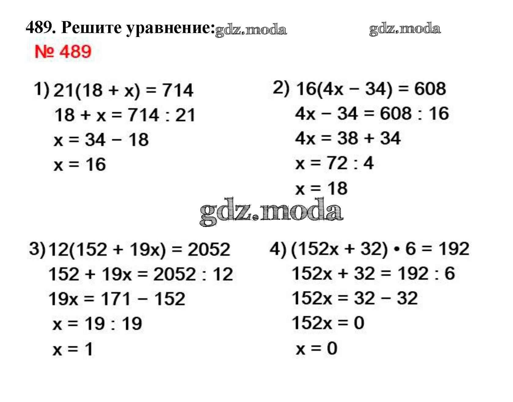 ОТВЕТ на задание № 489 Учебник по Математике 5 класс Мерзляк Алгоритм успеха