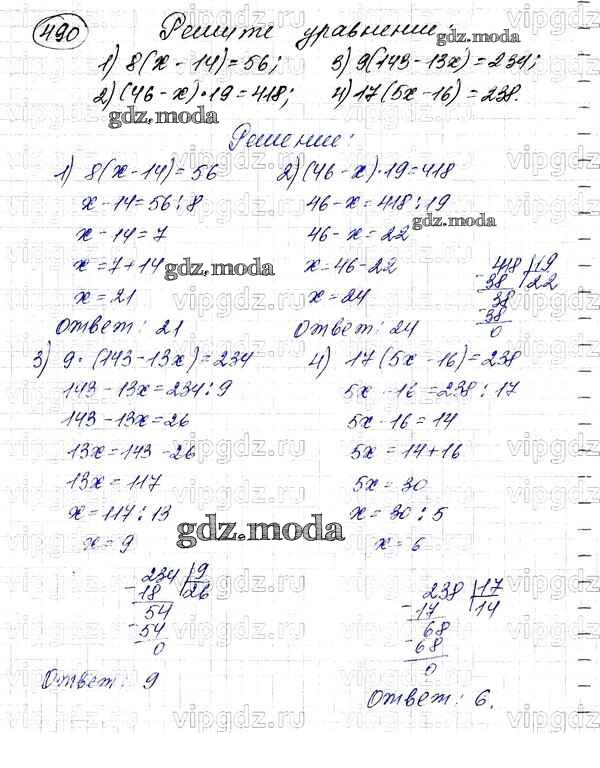 ОТВЕТ на задание № 490 Учебник по Математике 5 класс Мерзляк Алгоритм успеха