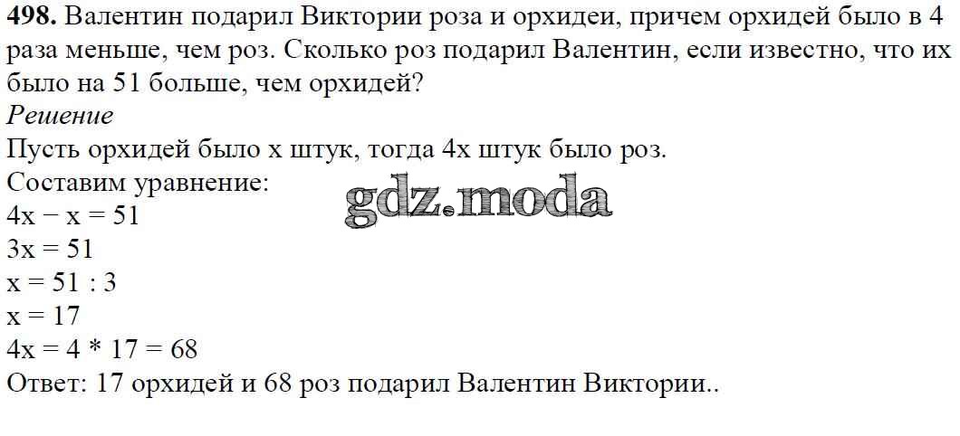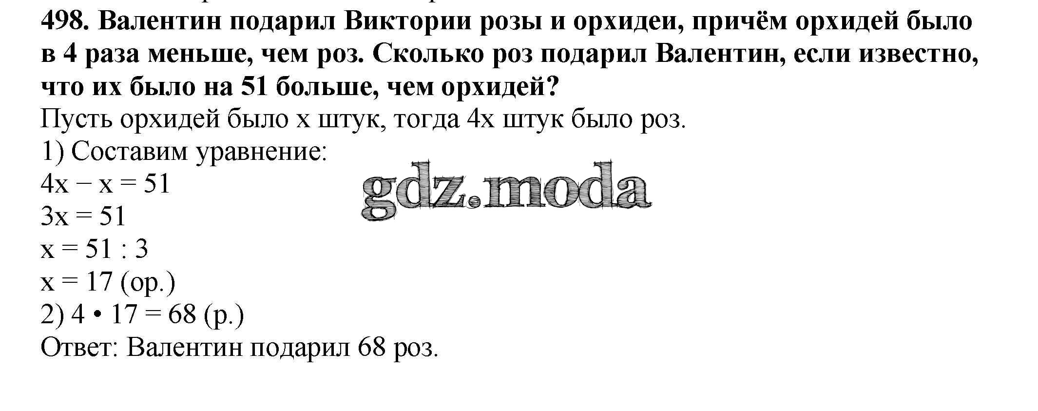 ОТВЕТ на задание № 498 Учебник по Математике 5 класс Мерзляк Алгоритм успеха
