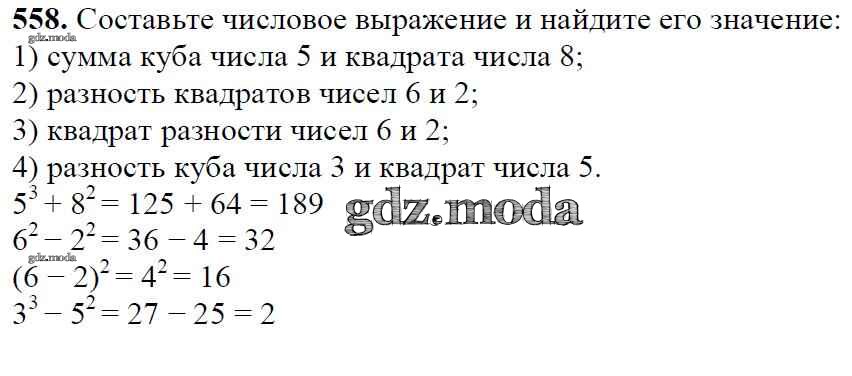 ОТВЕТ на задание № 558 Учебник по Математике 5 класс Мерзляк Алгоритм успеха