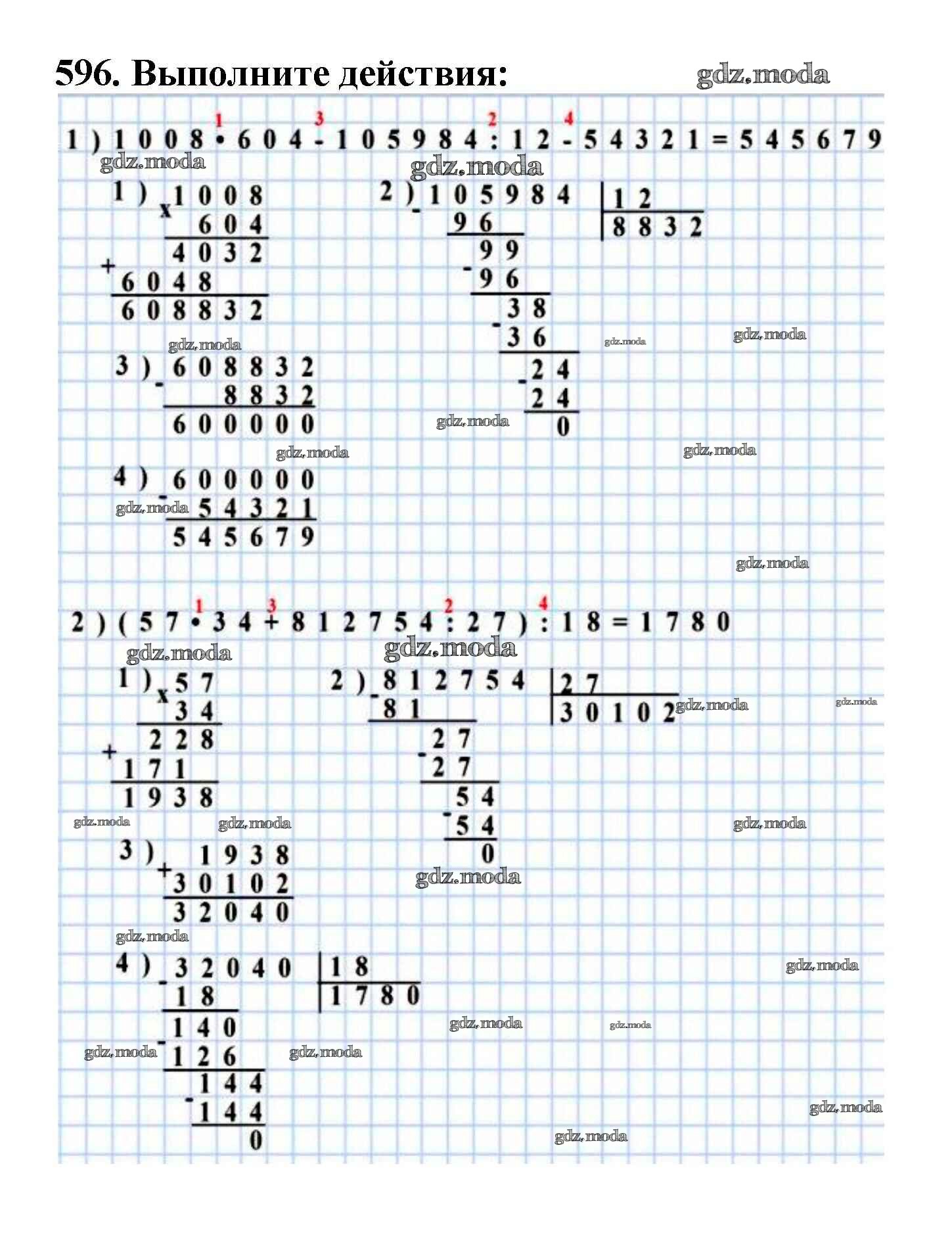 ОТВЕТ на задание № 596 Учебник по Математике 5 класс Мерзляк Алгоритм успеха