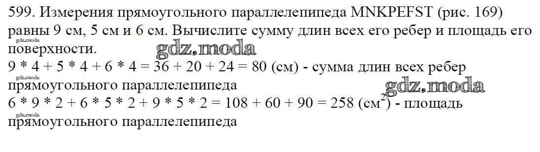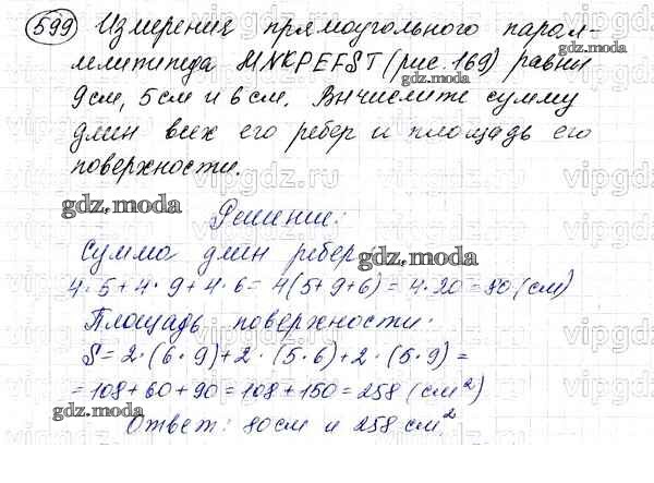ОТВЕТ на задание № 599 Учебник по Математике 5 класс Мерзляк Алгоритм успеха