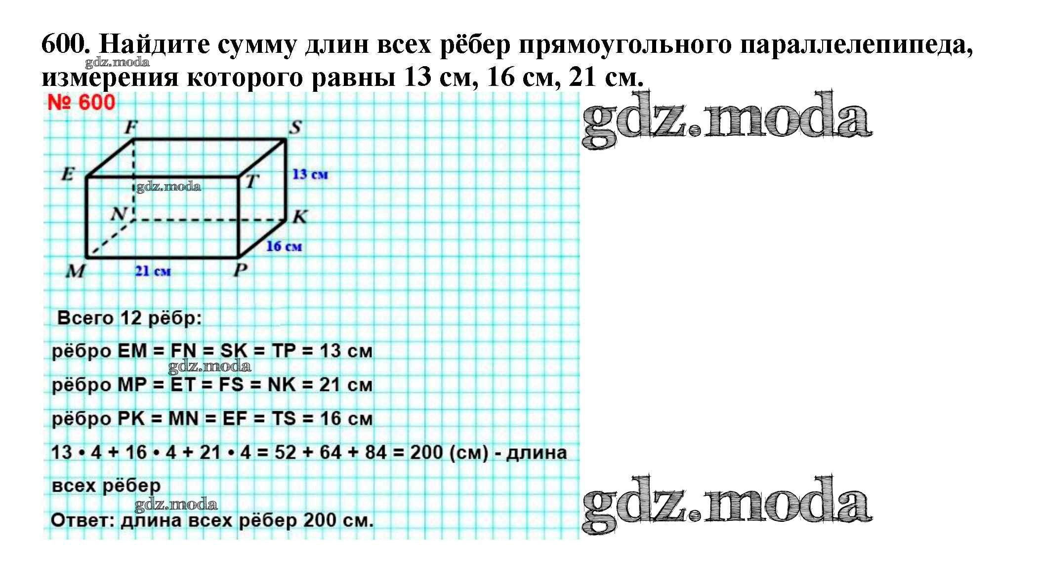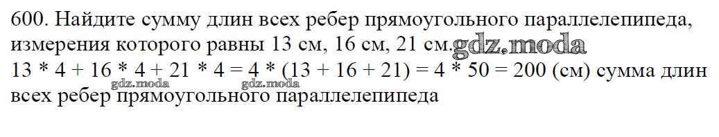ОТВЕТ на задание № 600 Учебник по Математике 5 класс Мерзляк Алгоритм успеха
