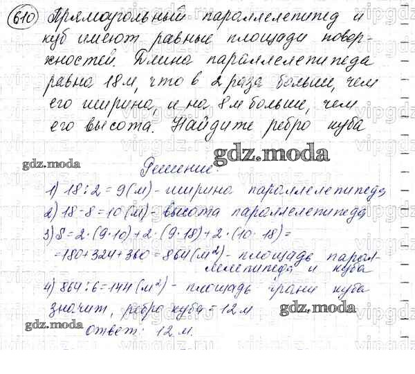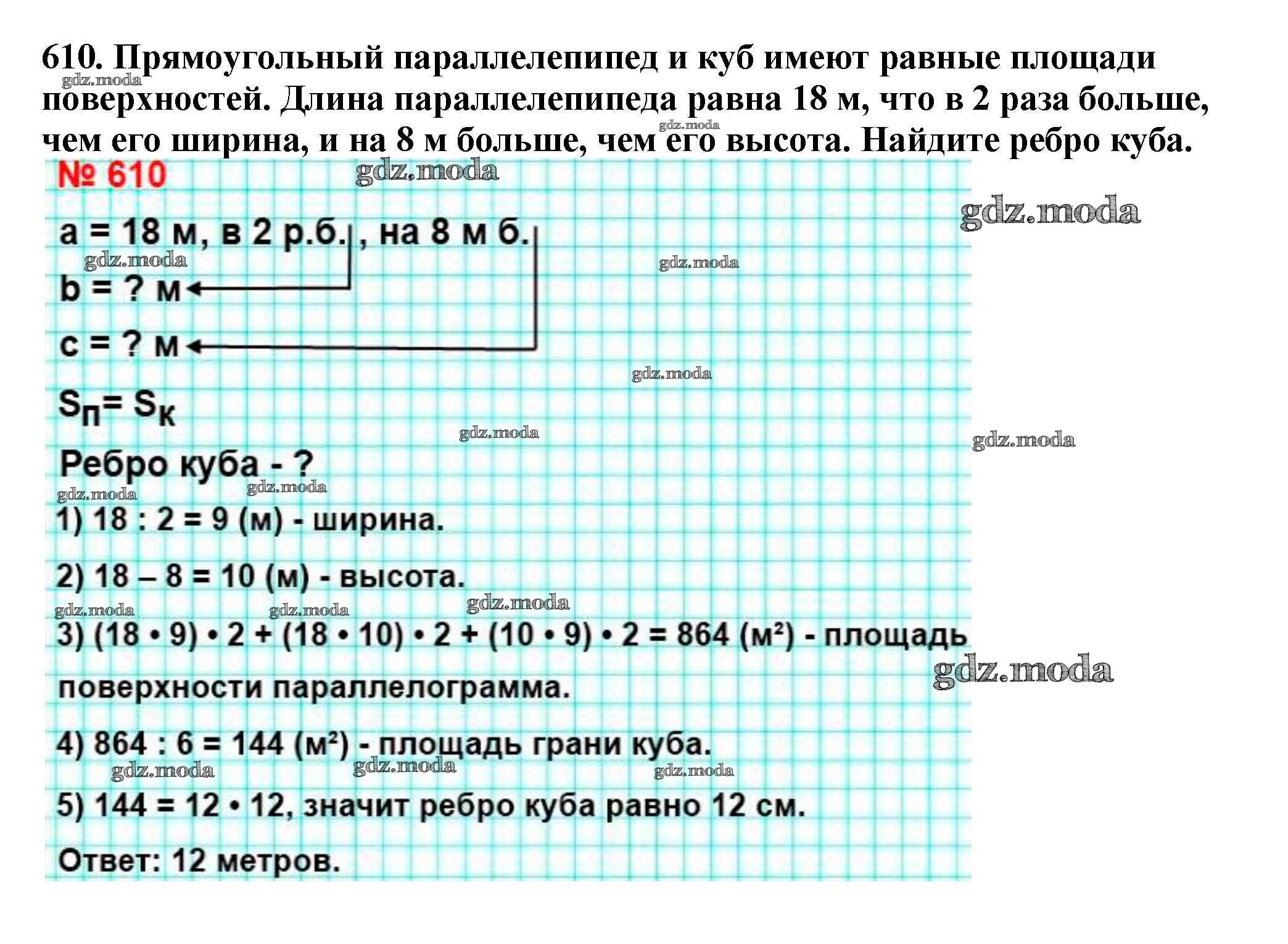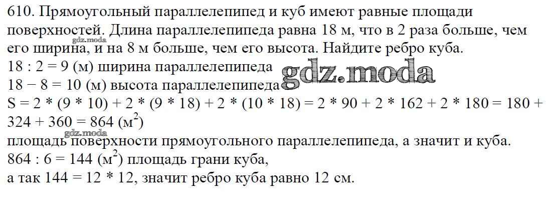 ОТВЕТ на задание № 610 Учебник по Математике 5 класс Мерзляк Алгоритм успеха