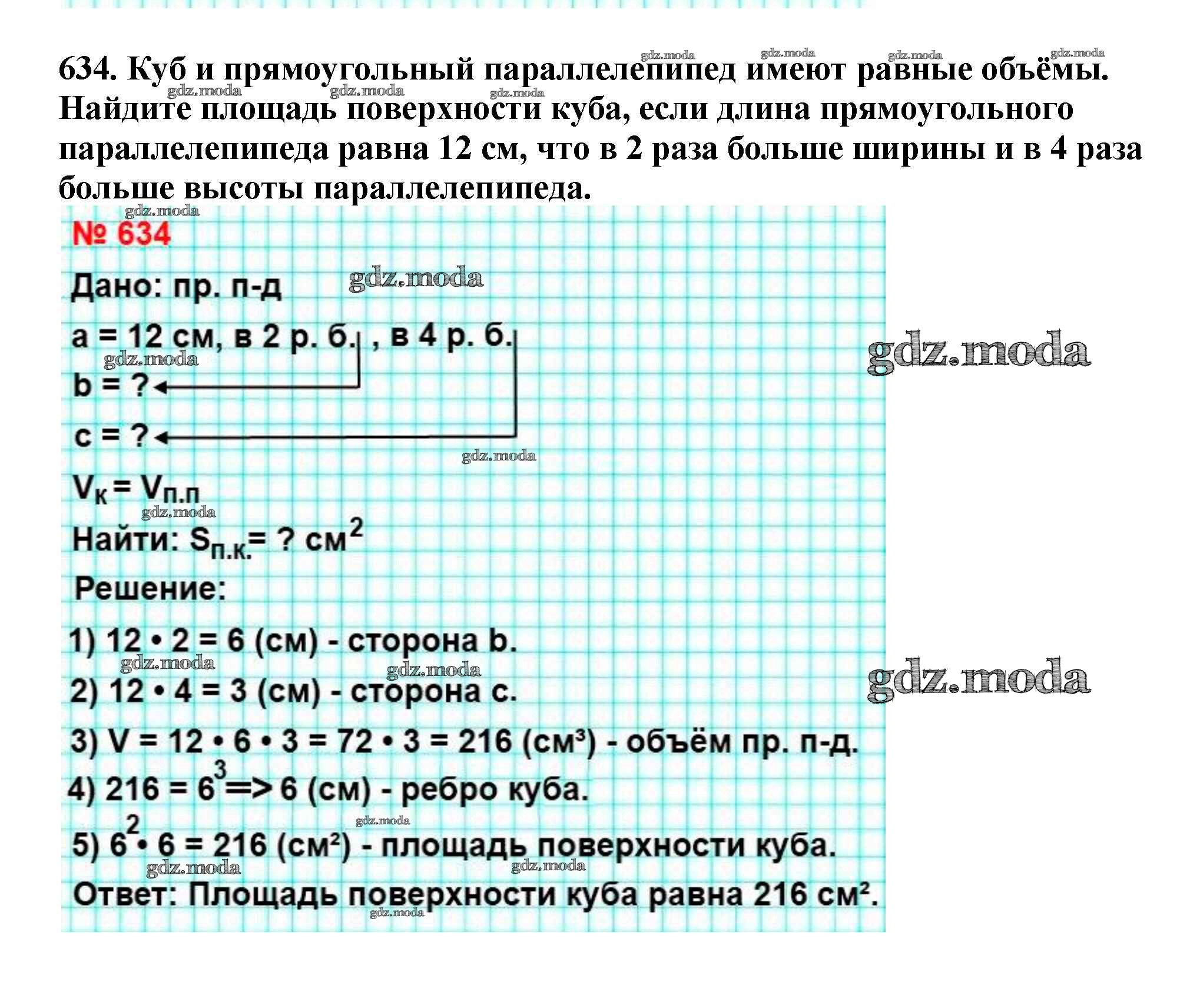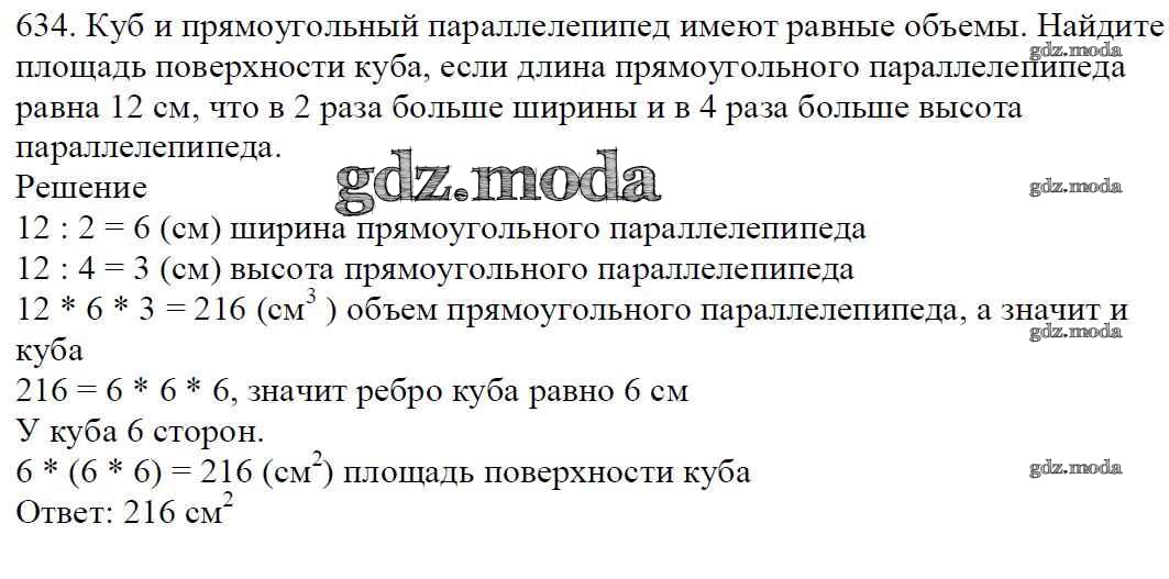 ОТВЕТ на задание № 634 Учебник по Математике 5 класс Мерзляк Алгоритм успеха