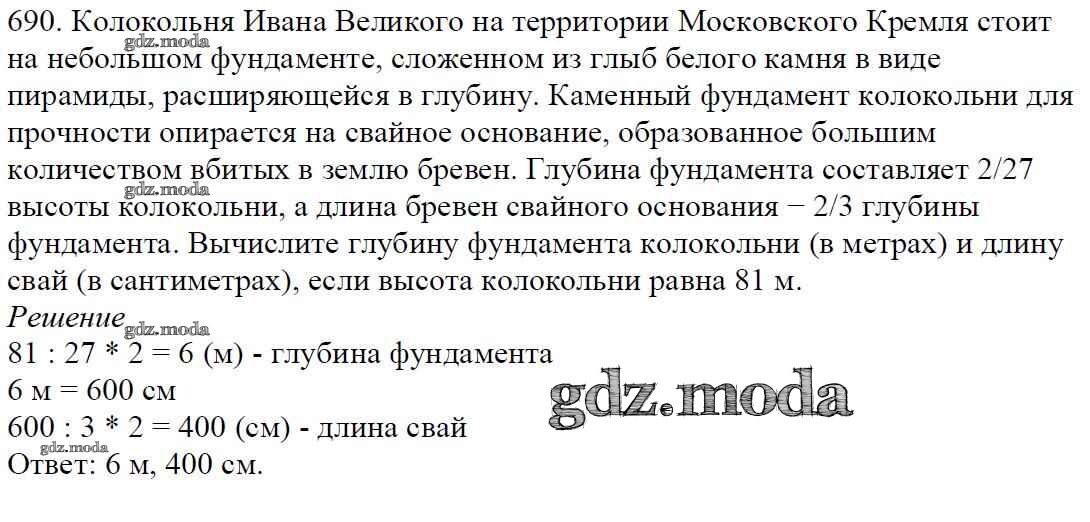 ОТВЕТ на задание № 690 Учебник по Математике 5 класс Мерзляк Алгоритм успеха