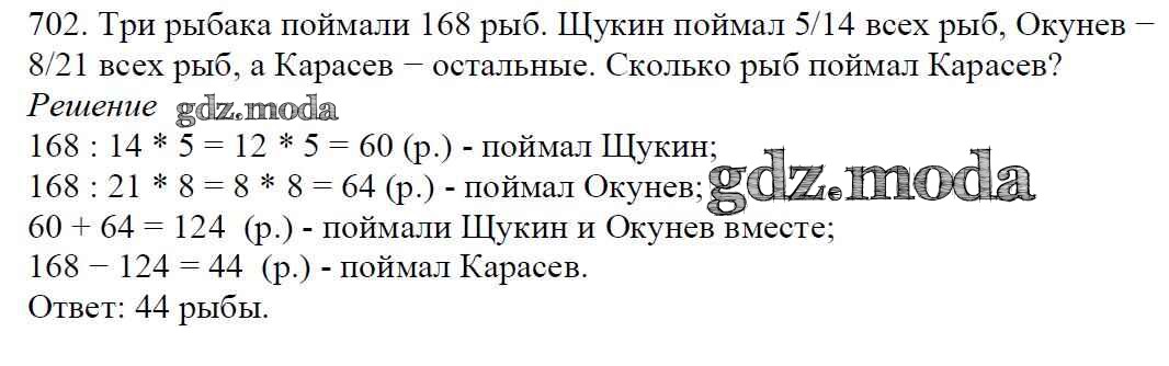 ОТВЕТ на задание № 702 Учебник по Математике 5 класс Мерзляк Алгоритм успеха