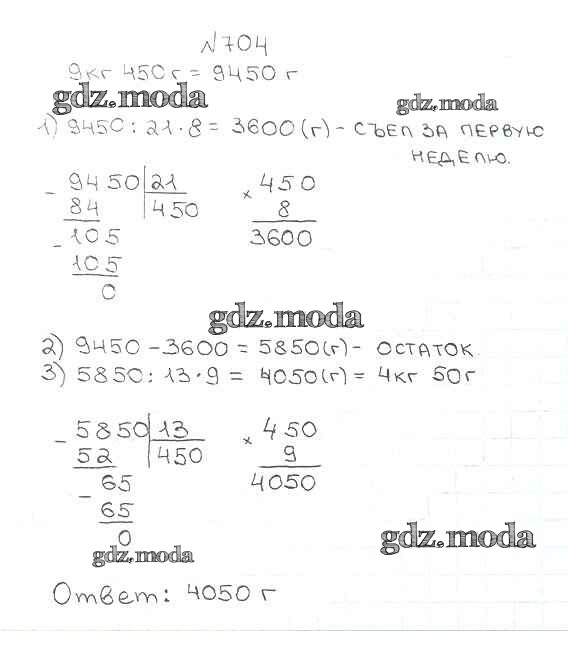 ОТВЕТ на задание № 704 Учебник по Математике 5 класс Мерзляк Алгоритм успеха