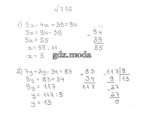 ОТВЕТ на задание № 716 Учебник по Математике 5 класс Мерзляк Алгоритм успеха