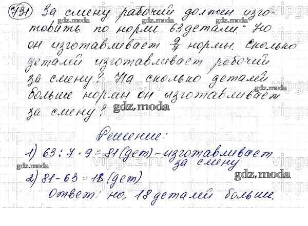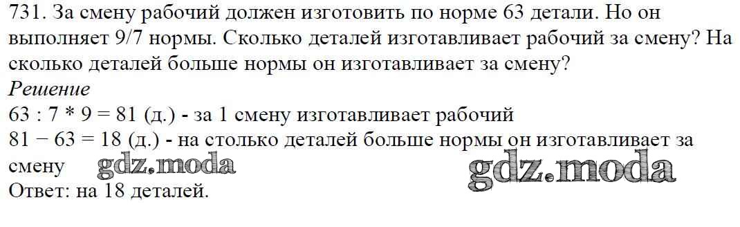 ОТВЕТ на задание № 731 Учебник по Математике 5 класс Мерзляк Алгоритм успеха