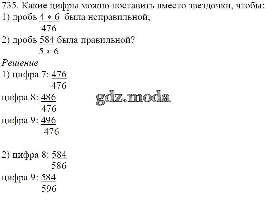 ОТВЕТ на задание № 735 Учебник по Математике 5 класс Мерзляк Алгоритм успеха