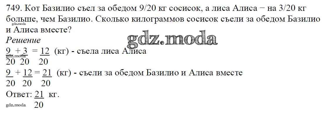 ОТВЕТ на задание № 749 Учебник по Математике 5 класс Мерзляк Алгоритм успеха