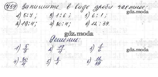 ОТВЕТ на задание № 759 Учебник по Математике 5 класс Мерзляк Алгоритм успеха