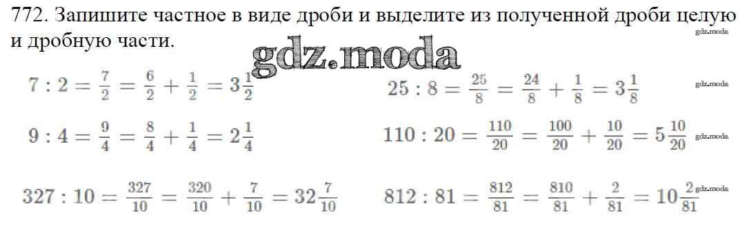 ОТВЕТ на задание № 772 Учебник по Математике 5 класс Мерзляк Алгоритм успеха