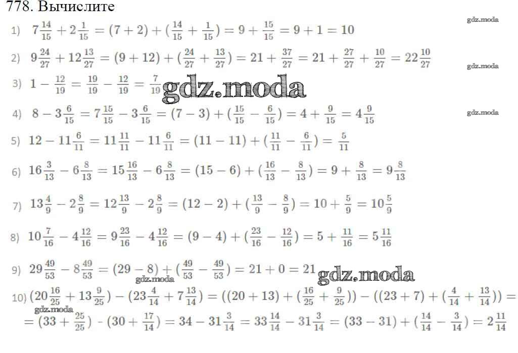 ОТВЕТ на задание № 778 Учебник по Математике 5 класс Мерзляк Алгоритм успеха