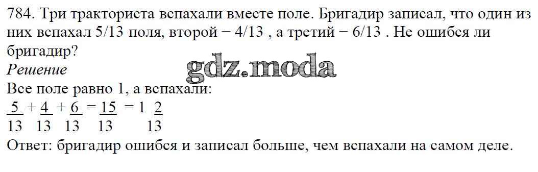 ОТВЕТ на задание № 784 Учебник по Математике 5 класс Мерзляк Алгоритм успеха