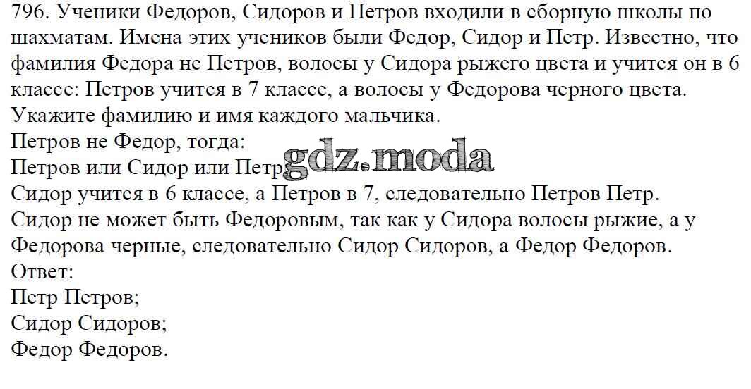 ОТВЕТ на задание № 796 Учебник по Математике 5 класс Мерзляк Алгоритм успеха