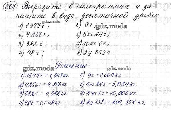 ОТВЕТ на задание № 807 Учебник по Математике 5 класс Мерзляк Алгоритм успеха
