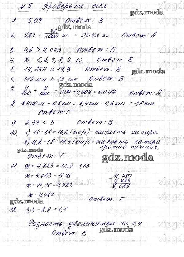ОТВЕТ на задание № проверь себя №5 Учебник по Математике 5 класс Мерзляк Алгоритм успеха
