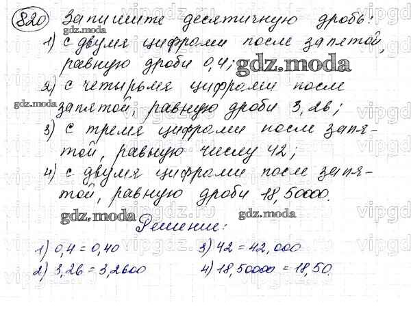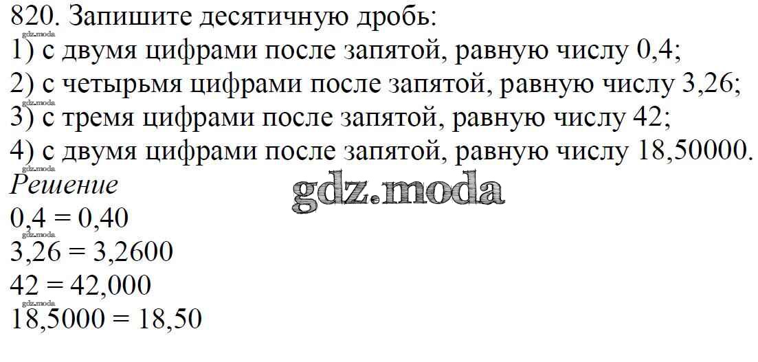 ОТВЕТ на задание № 820 Учебник по Математике 5 класс Мерзляк Алгоритм успеха