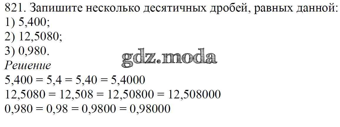 ОТВЕТ на задание № 821 Учебник по Математике 5 класс Мерзляк Алгоритм успеха
