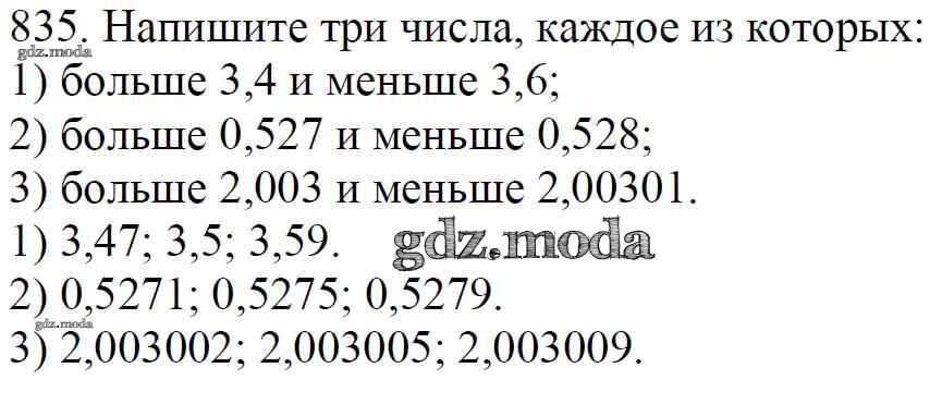 ОТВЕТ на задание № 835 Учебник по Математике 5 класс Мерзляк Алгоритм успеха