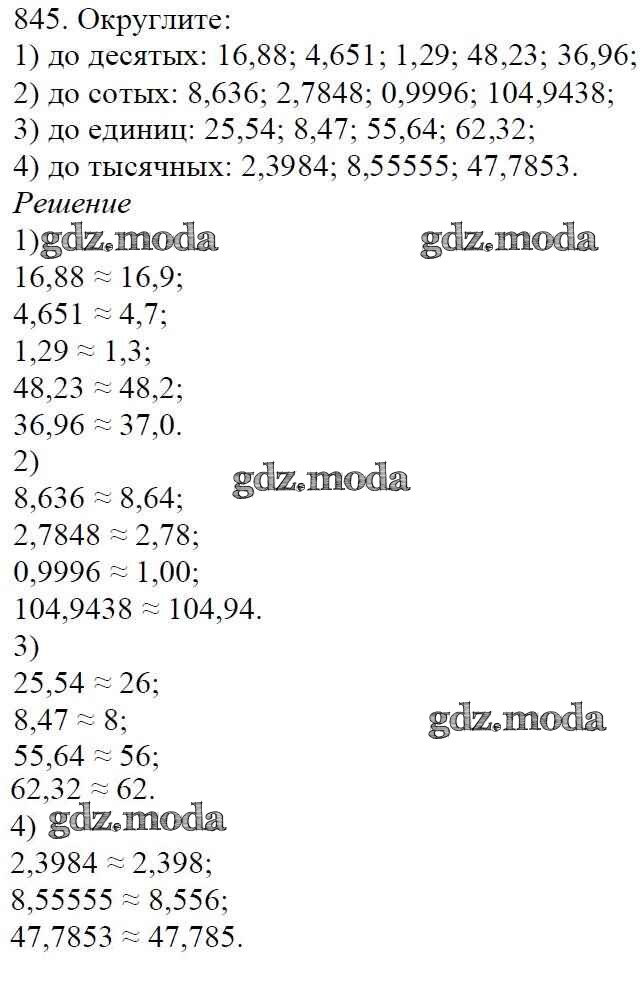 ОТВЕТ на задание № 845 Учебник по Математике 5 класс Мерзляк Алгоритм успеха