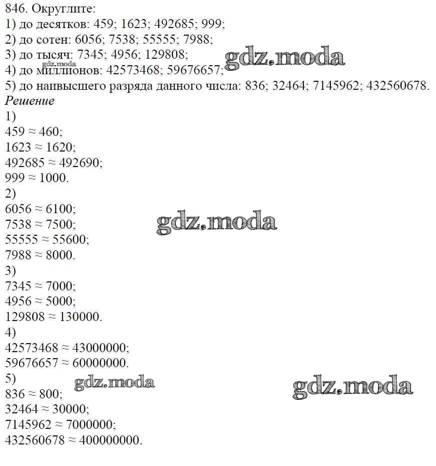 ОТВЕТ на задание № 846 Учебник по Математике 5 класс Мерзляк Алгоритм успеха