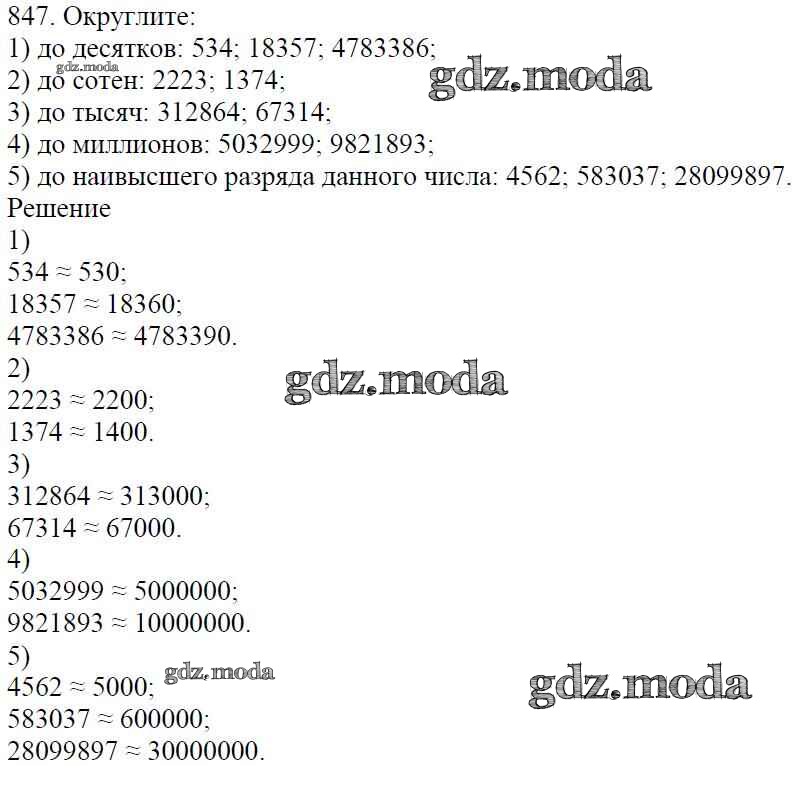 ОТВЕТ на задание № 847 Учебник по Математике 5 класс Мерзляк Алгоритм успеха