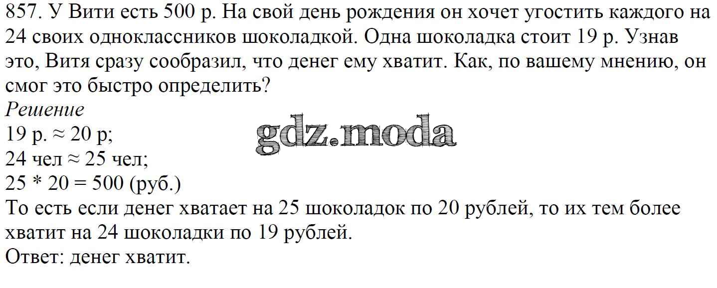 ОТВЕТ на задание № 857 Учебник по Математике 5 класс Мерзляк Алгоритм успеха